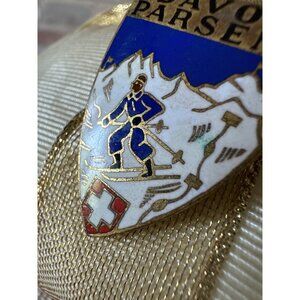 Ever wanted to carry a piece of the Swiss Alps in your pocket? Now you can, without the hassle of pesky snow or altitude sickness. This vintage Davos Parsenn ski badge is the perfect piece to show off your love for skiing, or just your fondness for small, shiny objects.