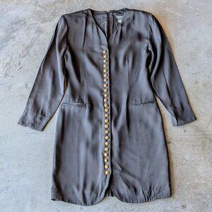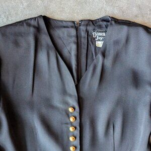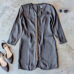 Vintage Dawn Joy Fashions Black Long Sleeve Gold Button Front Sheath Mini Dress