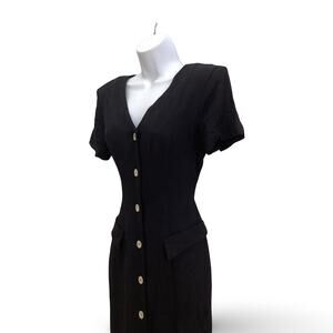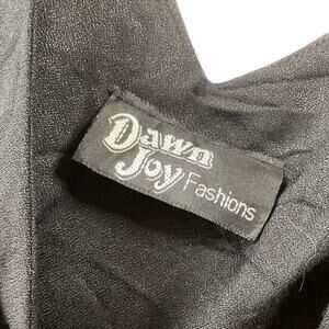 Vintage black button down dress by Dawn Joy Fashions in good preowned condition. No size and care tag. No other flaws.