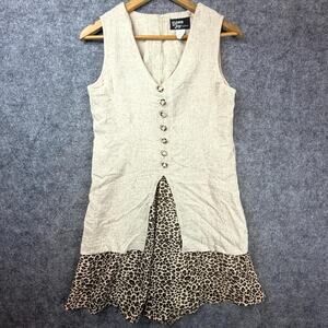 Vintage Dawn Joy Fashions Romper Womens Medium Leopard Linen 90s Earthy Chic