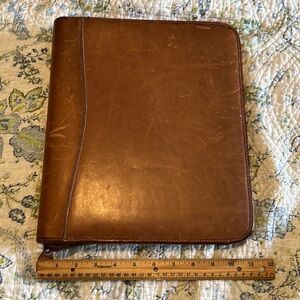 Vintage Day Timer brown leather planner/ folder. Zipper close. Nice worn leather