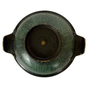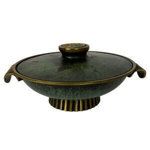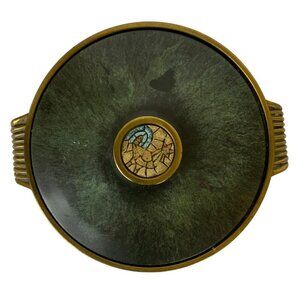 Vintage Dayagi Brass Enamel Lidded Dish Mosaic Rooster Handle Green Gold Israel