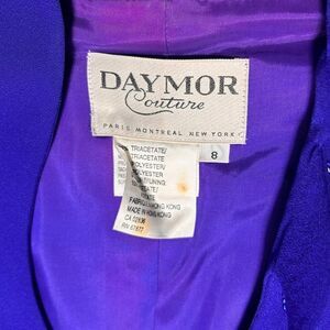 Step back in time with this exquisite vintage Daymor Couture royal blue two-piece skirt suit from the 1980s 1990s. Known for their designer-quality craftsmanship, Daymor Couture specializes in timeless formalwear that exudes sophistication and luxury. This high-end ensemble is perfect for weddings, galas, church events, or any occasion where elegance is essential.