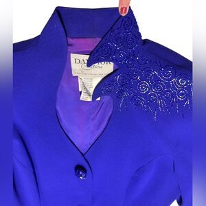 Vintage Daymor Couture Royal Blue Embellished Skirt Suit Size 8 Formal Two Piece