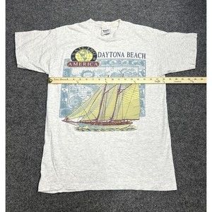 Vintage Daytona Beach Sail Boats Gray Single Stitch Graphic T-Shirt Size Medium. Please see pictures for condition and measurements for proper sizing and fit.