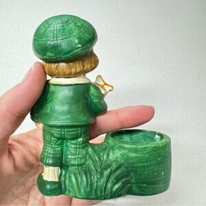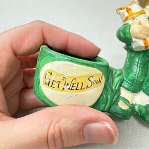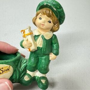 Vintage De Bee Irish Boy Planter Green Porcelain Figurine Get Well Soon