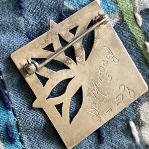 Rare Vintage De Marcay Brooch Sterling Silver Pin Modernist Cutwork Western Flower with a nod to deco