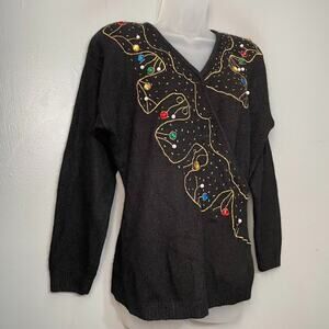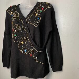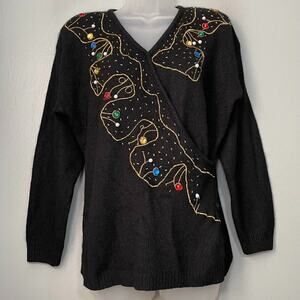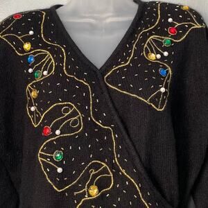Vintage De Rotchild Size Medium Black Silk Angora Jeweled Wrap Sweater Christmas