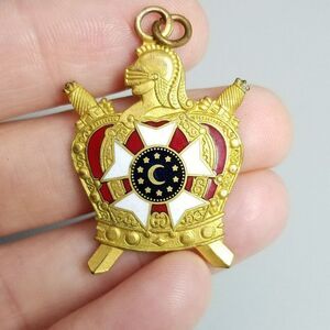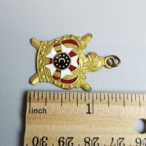 Vintage DeMolay Badge Charm Pendant, Gold Tone Enamel Masonic Mason Youth Estate