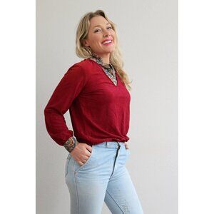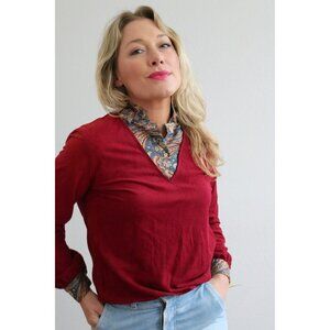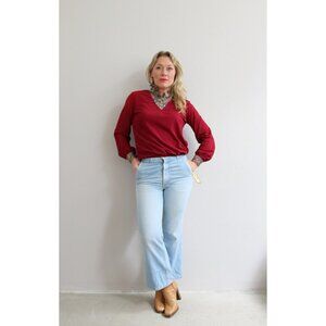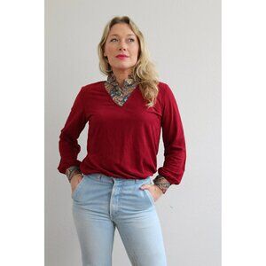 Vintage, Deadstock 1970's Cranberry Ruffle Blouse ~ Women's Small, Medium, Large