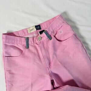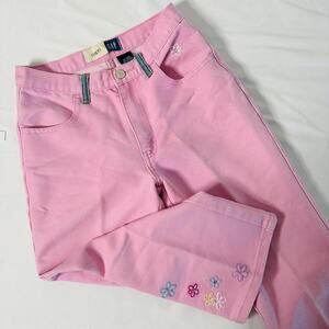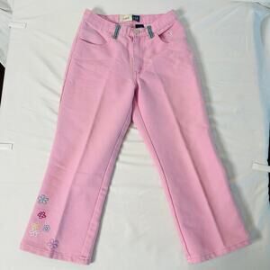 Vintage Deadstock 1990s Gap Pink Denim Floral Embroidered Capri Pants