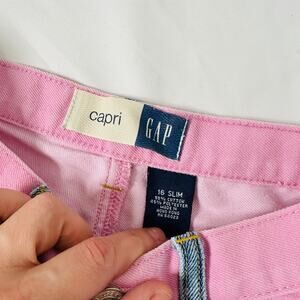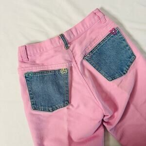 Vintage Deadstock 1990s Gap Pink Denim Floral Embroidered Blue Jean Pockets Capri Pants