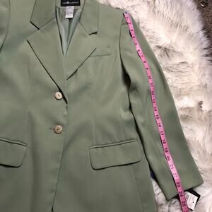 • vintage 90s Sag Harbor pistachio green blazer with tags still attached. Collared, long sleeves, has padding in the shoulders. Lined. Such a unique, fun color. Size 10.