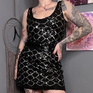 Vintage Deadstock Arden B. NWT Sleeveless Black & Gold Sequined Mini Dress 100% Cotton & Genuine Hand Sewn Sequin Throughout