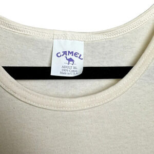 Off white / ivory Camel graphic tank top made in 1995. Single stitch on bottom hem. Very good condition. Small chest graphic on front and large graphic on rear.