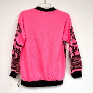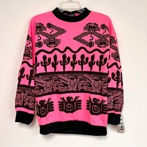 Vintage Kicks Deadstock 90’s Neon Pink Cactus Southwestern Serape Navajo Aztec Fleece Pullover Sweatshirt. New with tags.