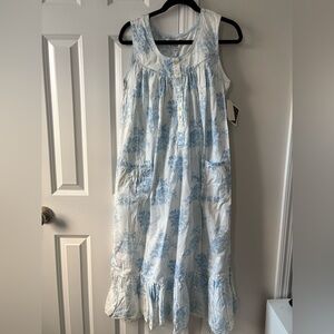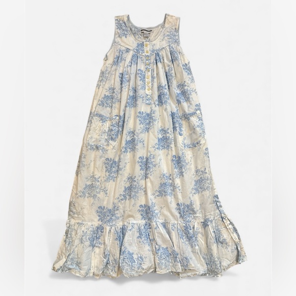 Vintage Deadstock NWT Jennifer Moore Cotton Nightgown. Blue cabbage roses print. Very pretty and romantic. Size medium.