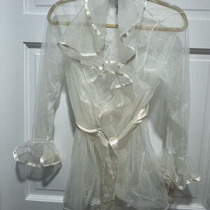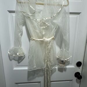 Vintage Deadstock Sheer White Cinema Robe Ruffle Trim Wrap Romantic Lingerie NWT