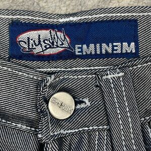 Elevate your wardrobe with these stylish Vintage 90s Eminem Slim Shady Hip Hop Rap Silver Gray Jeans.