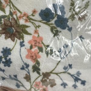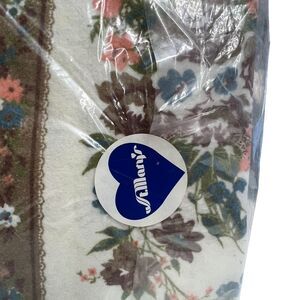 Vintage Deadstock St. Mary's Rose Coordinate Blanket Tan Blue Pink Floral 72x90
