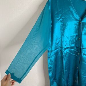 Vintage Deadstock Victorias Secret Blue Silky Pearl Button Nightgown Size Small