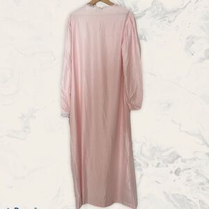 Vintage Deadstock 70’s Soft Pastel Pink Long Satin Button Up Robe Housecoat Sz S