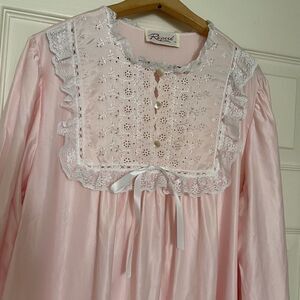 Silky soft, baby pink, feminine, Y2K, costume, movie, prop, grannycore, grandmacore, Jan Brady, night coat, retro, lace, , deadstock, hipster, Lolita