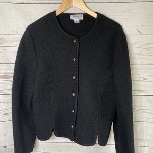 Vintage Dean Of Scotland Boiled Wool Cardigan Medium Chunky Black M Gorgeous