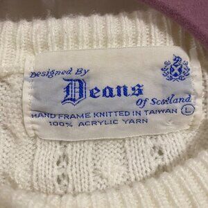 Vintage Deans of Scotland White Cableknit Button Up Cardigan Sweater Size L