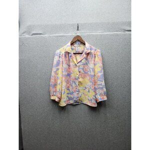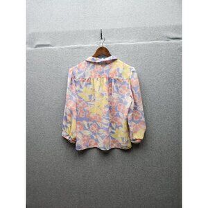 Vintage Deborah Barry Floral Button-Up Blouse With Pastel Yellow & Pink Print Li