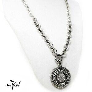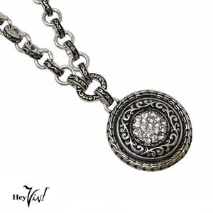 Vintage Decorated Chain Ornate Engraved Pendant w Rhinestones 21" Chain -Hey Viv