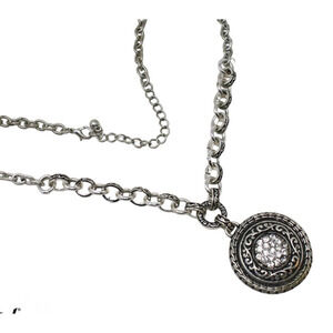 Vintage Decorated Chain w Ornate Engraved Round Pendant w Rhinestones