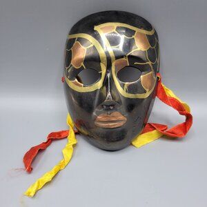 Vintage Decorative Brass Metal Wall Masks Set Of 2 Black With Gold Accents