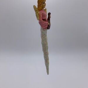 Vintage Decorative Ice Cycle Angel Ornament With Iridescent Glitter & Mandolin