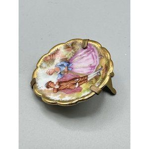 Vintage Decorative Limoges Miniature Plate Dish with Stand Holder Romantic Scene