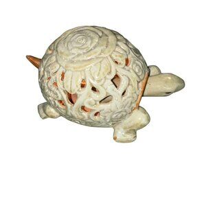 Vintage Decorative Turtle Lamp Glazed Ceramic with Perforations Swivel Head
