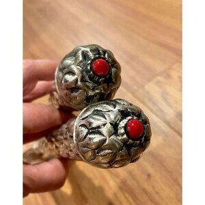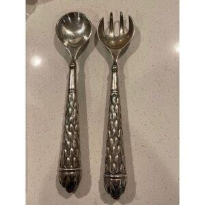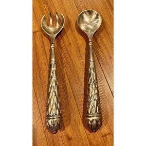 Vintage Decorative Ornate Silver Plated Twos Company with Red Pearl detail Fork & Spoon Salad Serving Set / Tongs