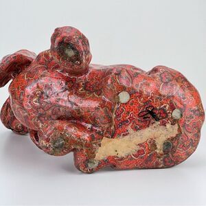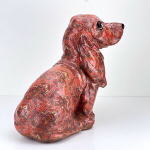 Vintage Folk Art Style Decoupage White's Whachamacallits Hand Made Basset Hound Statue Dog.