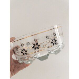 Vintage Decover Italy Glass Bowl With Black & Gold Floral Design