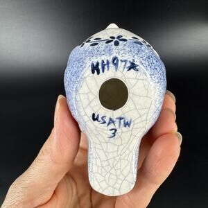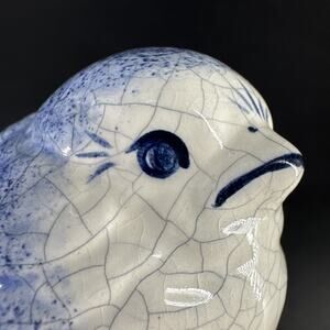 Vintage Dedham Bird Figurine Cobalt Blue & White Ceramic Crackle Glaze Design