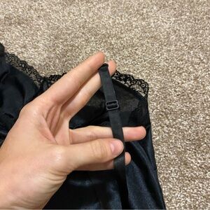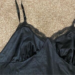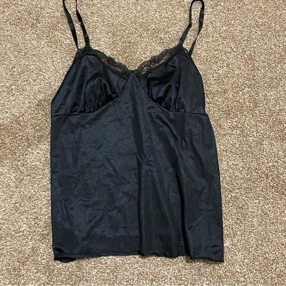 Vintage Deera Black Satin Lace Trim Tank size 34
