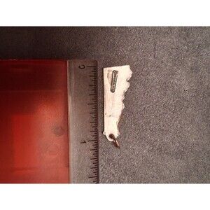 This vintage dangle charm is shaped like the state of Delaware, featuring detailed engravings of notable locations including Wilmington, Dover, Milton, and the Zwaanendael House. Crafted from sterling silver and marked on back along with a maker's mark I can't decipher.
