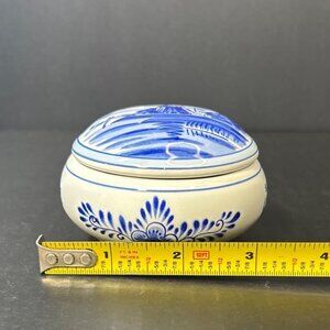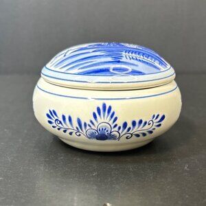 Vintage Delft Blue Trinket Box with Lid Blue and White Round Painted Holland