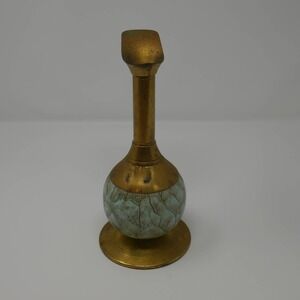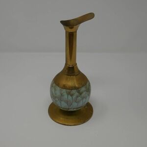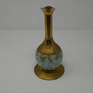 Beautiful hand painted glaze on this mostly brass piece. It has a robin's egg blue undercoat, then overglazed with unique look. Very nice brass work. Felted bottom for a non-scratch surface. This piece was made in Holland by Delft. Great collection piece to own.