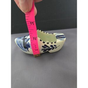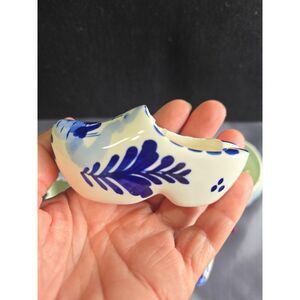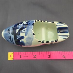 This vintage Delftware is a ceramic ashtray shoe with a place to set your cigarette when not holding it. It has one small chip on the inside of the shoe.