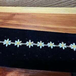 Vintage delicate silver tone white painted daisy floral pattern, bracelet comes with extender. Beautiful hard to find floral bracelet.
