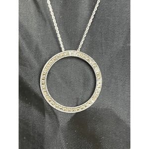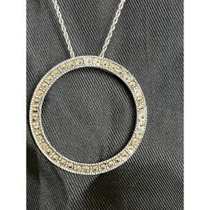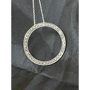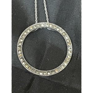 Vintage Delicate Sterling Silver & Marcasite Open Circle Pendant 1 1/4" Wide. The pendant is in good vintage condition and it is stamped 925 AD on the back. The chain is stamped 925 on the clasp.