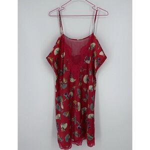 Vintage Delicates Chemise Slip Nightie Satin Lace Fans Y2K 90s Red Womens Size Large