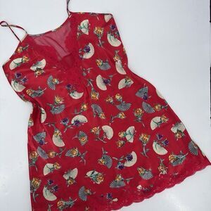 Vintage Delicates Chemise Slip Nightie Satin Lace Fans Red Womens Size Large