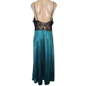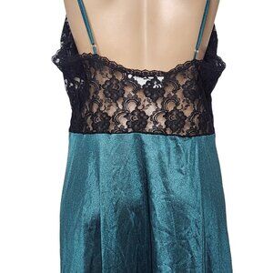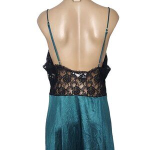 Vintage Delicates Nightgown Lace Slip Dress Black and Emerald Green Size Large